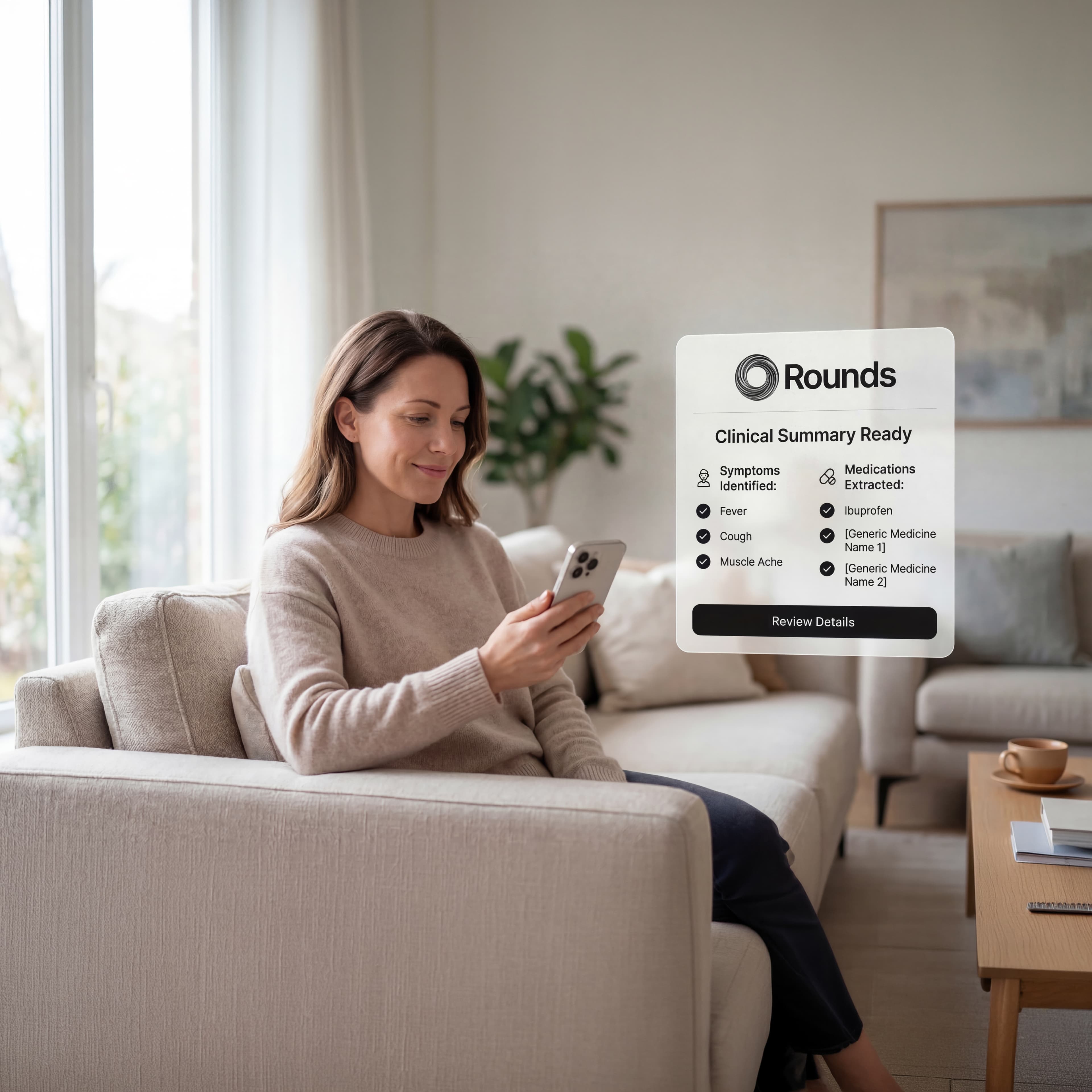 Rounds is a HIPAA-compliant, secure AI assistant that helps me with routine tasks such as gathering your medical history, preparing notes, and following up after visits. It does not make medical decisions. Instead, it frees me from paperwork so I can focus our time together on what matters most - understanding your condition, discussing your options, and guiding your care.